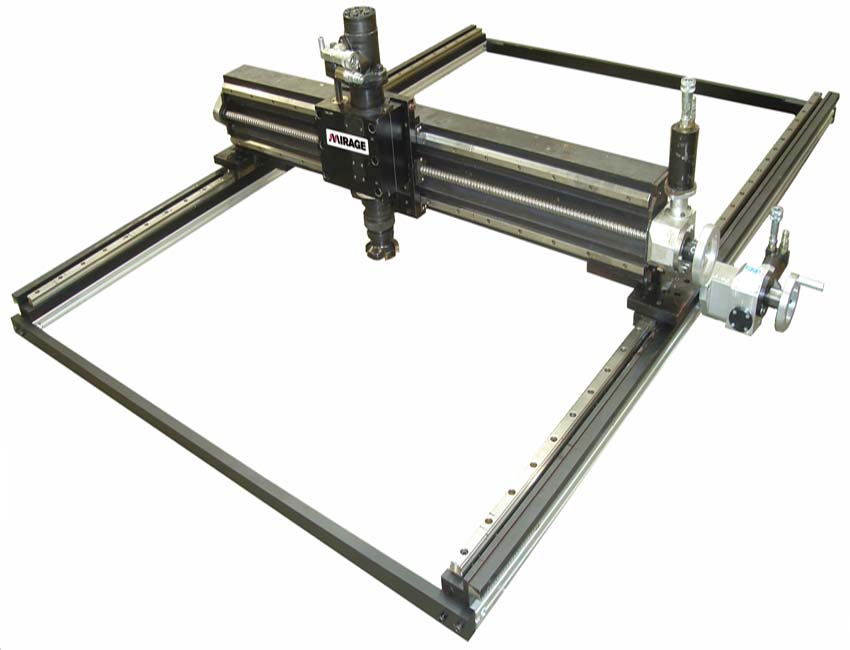 توضيح فارسي : دستگاه فرز دروازه ای قابل حمل مدل GMRF3000: لوازم ریل خطی چند تکه می توانند برای تبدیل فرز 2 محوره به فرز 3 محوره با محدوده کاری بزرگ در سایت مورد استفاده قرار گیرند. مونتاژ مدولی، انعطاف پذیری بالایی ایجاد می کند. از آنجایی که هر دو محور سرعت های متغییری دارند، می توانند دقت بالایی ارائه کنند.